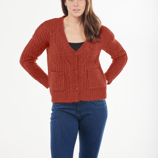 BRIDGE & LORD BUTTON CARDIGAN LIPSTICK