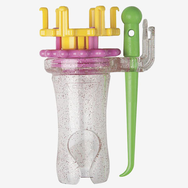 The Clover Wonder Knitter is a fun and easy-to-use hand knitting machine that lets you create knitted cords quickly and effortlessly. It can knit with yarn, embroidery floss, and even wire, making it incredibly versatile for all kinds of creative projects.